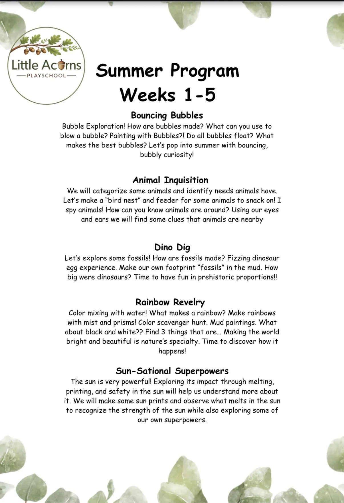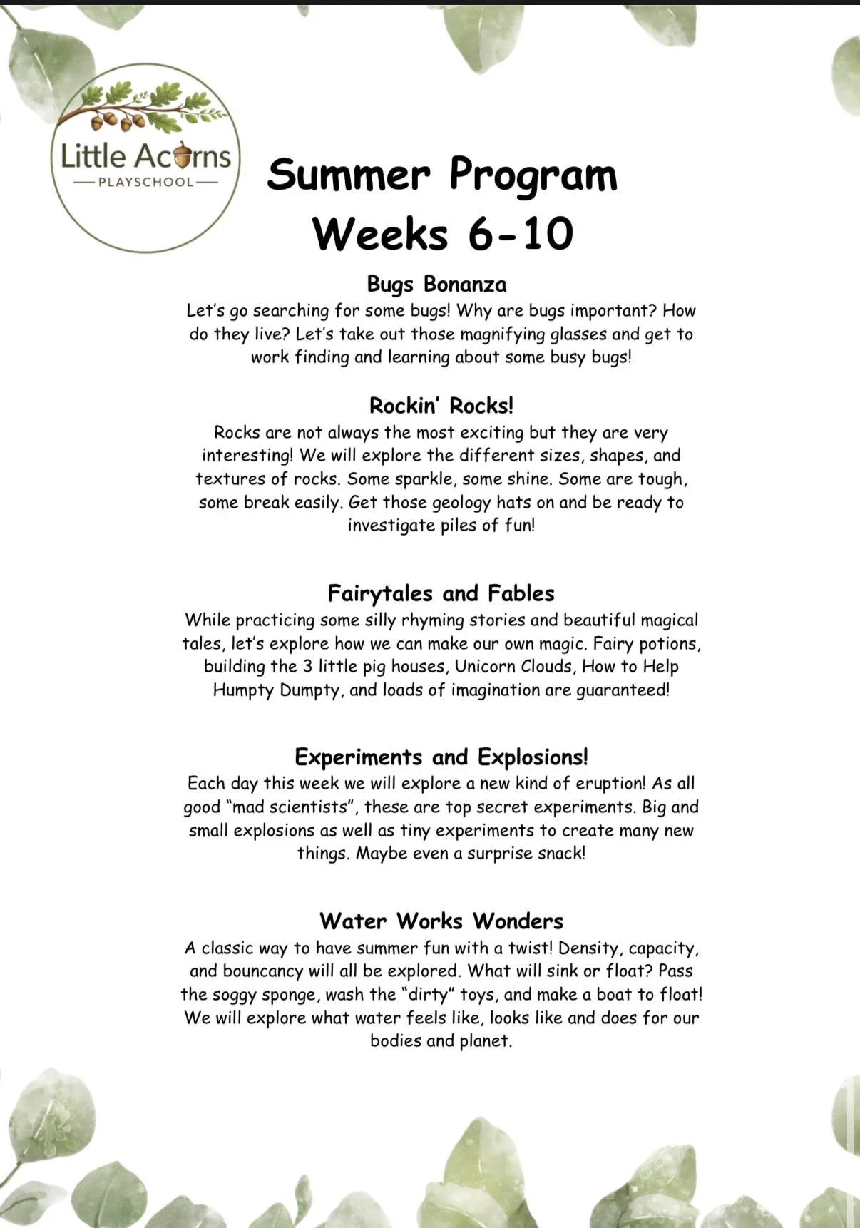 That’s summer at Little Acorn’s…. I’m so excited to share our theme weeks! We have such a fun summer planned!